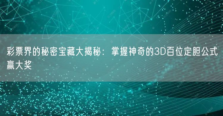 深度揭秘彩票界的神秘武器,带你了解关于3D百位定胆公式的秘密,让你在彩票世界中探索未知,助你开启彩票人生新篇章。