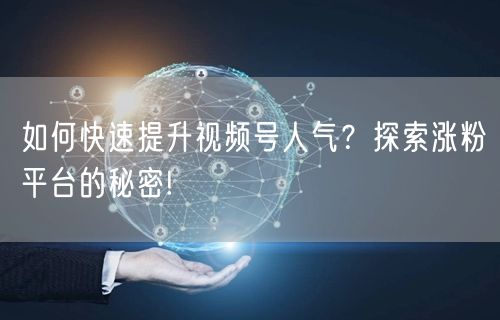 如何快速提升视频号人气?探索涨粉平台的秘密!